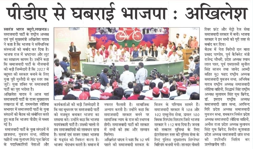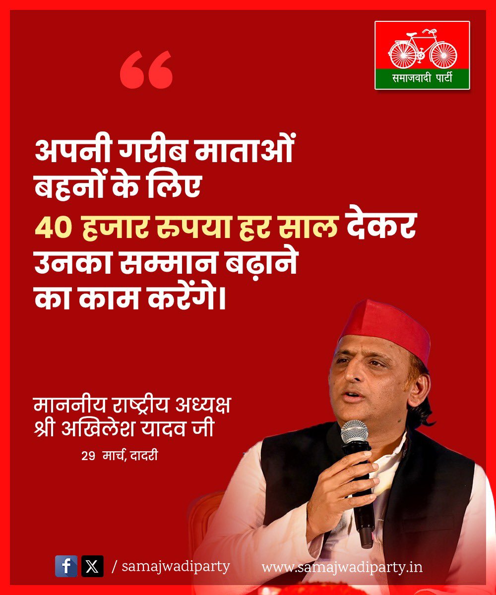 рд╕рдорд╛рдЬрд╡рд╛рджреА рдкрд╛рд░реНрдЯреА рдХреЗ рд░рд╛рд╖реНрдЯреНрд░реАрдп рдЕрдзреНрдпрдХреНрд╖ рдЕрдЦрд┐рд▓реЗрд╢ рдпрд╛рджрд╡ рдЬреА рдиреЗ рдкрд╛рд░реНрдЯреА рдХрд╛рд░реНрдпрдХрд░реНрддрд╛ рд╕реЗ рдЕрдкреАрд▓ рдХреА рд╣реИ рдХрд┐ рд╕рднреА рдорддрджрд╛рддрд╛ рдЕрдкрдиреА рд╡реЛрдЯрд░ рд▓рд┐рд╕реНрдЯ рдореЗрдВ рдирд╛рдо рдЕрд╡рд╢реНрдп рдЬрд╛рдВрдЪ рд▓реЗрдВред рдЙрдиреНрд╣реЛрдВрдиреЗ рдХрд╣рд╛ рдХрд┐ рд╣рд░ рд╡реЛрдЯ рдорд╣рддреНрд╡рдкреВрд░реНрдг рд╣реИ рдФрд░ рдХрд┐рд╕реА рднреА рдкреНрд░рдХрд╛рд░ рдХреА рдЧрд▓рддреА рд╣реЛрдиреЗ рдкрд░ рддреБрд░рдВрдд рд╕реБрдзрд╛рд░ рдХрд░рд╛рдирд╛ рдЪрд╛рд╣рд┐рдПред